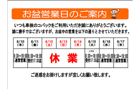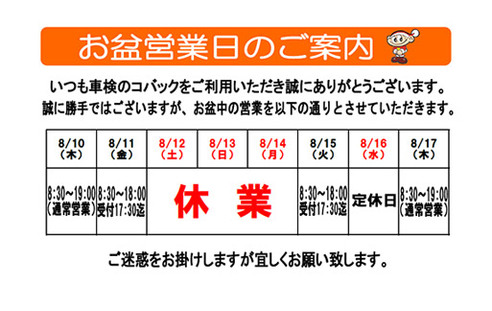 さて、誠に勝手ながら下記日程にてお盆休みとさせていただきます。