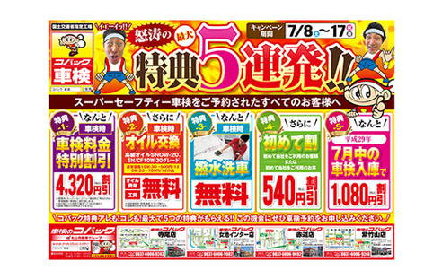 今月(7月)中☆車検入庫で1,080円割引!!